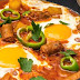4 - كيف يطيب المرقاز نزيد شوية ماء للمقلى وبعد نزيد الفلفل والبيض بعد 5 دقائق نطفي الغاز ونقدم العجة مع المعدنوس والبصل مقصوصين !!