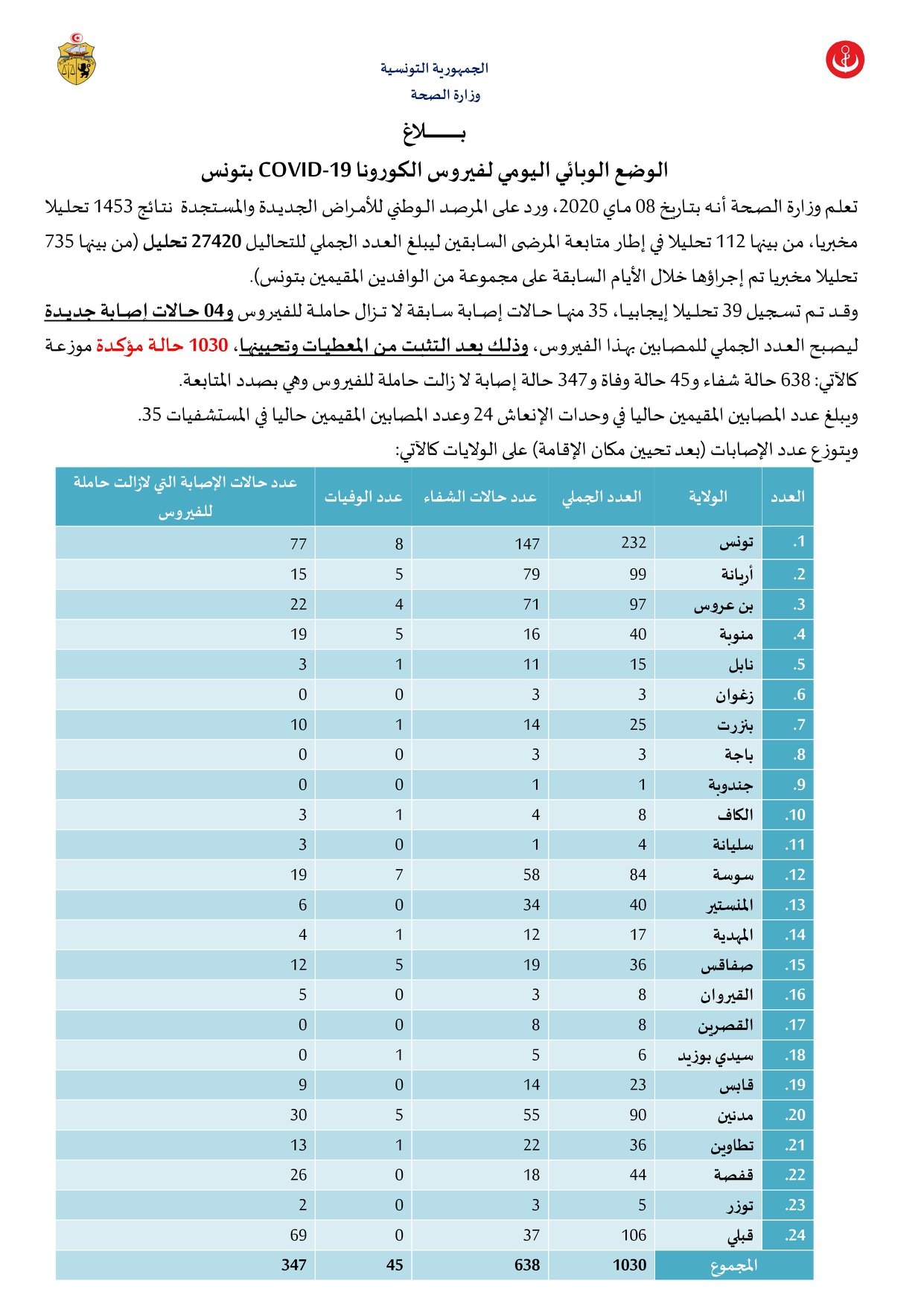 * مصدر الخبر : إذاعة جوهرة + وزارة الصحة التونسية